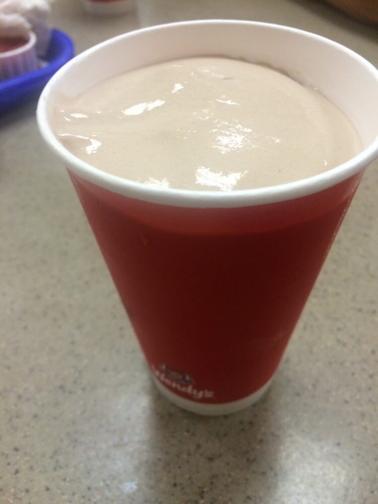 Your favorite Frosty flavor, chocolate or vanilla, swirled and topped with a thick brownie batter sauce. Brownies and ice cream but better because its brownies and Frosty.